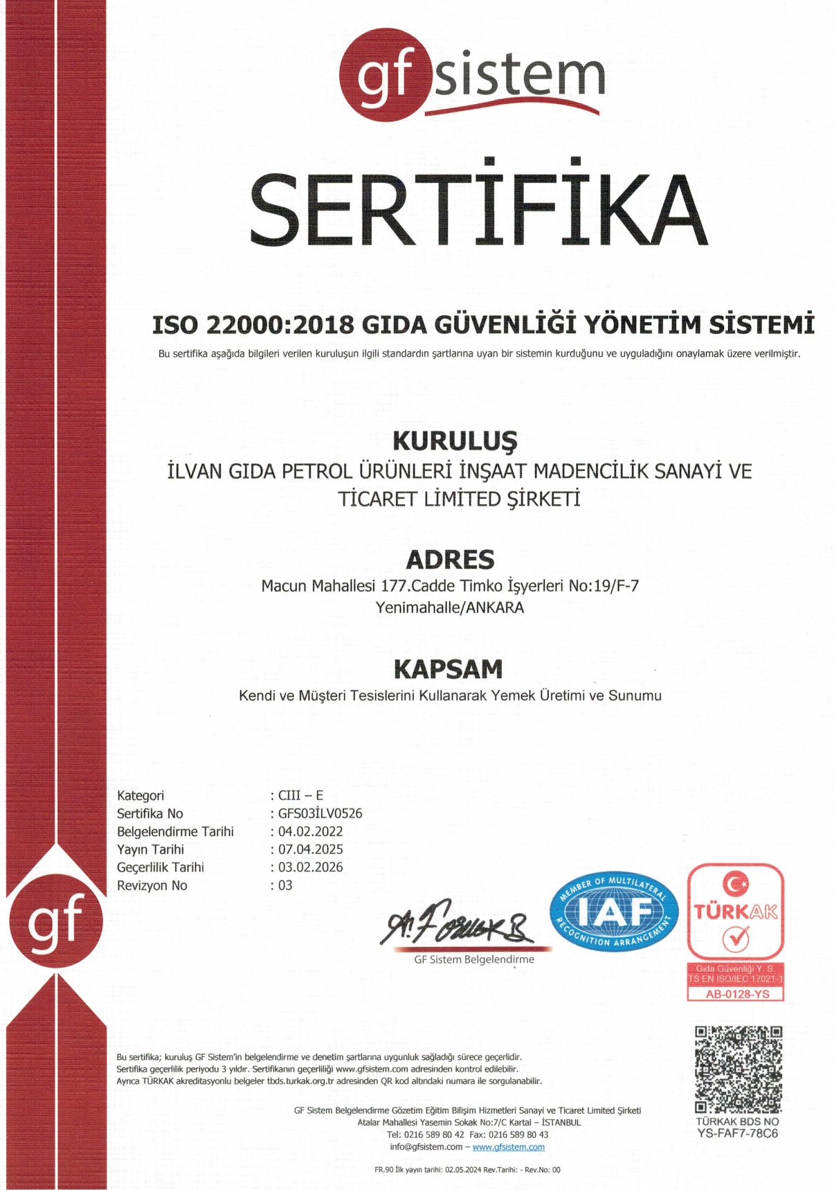 Yerinde Yemek Hizmeti